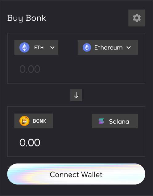 import { fetchQuote, swapFromSolana } from '@mayanfinance/swap-sdk' const quotes = await fetchQuote({ amount: 250, fromToken: 'EPjFWdd5AufqSSqeM2qN1xzybapC8G4wEGGkZwyTDt1v', // USDC toToken: '0x95ad61b0a150d79219dcf64e1e6cc01f0b64c4ce', // SHIBA fromChain: "solana", toChain: "ethereum", slippageBps: 50, }); const swapTrx = await swapFromSolana( quotes[0], originWalletAddress, destinationWalletAddress, referrerAddresses, signSolanaTransaction, solanaConnection );Mayan Widget